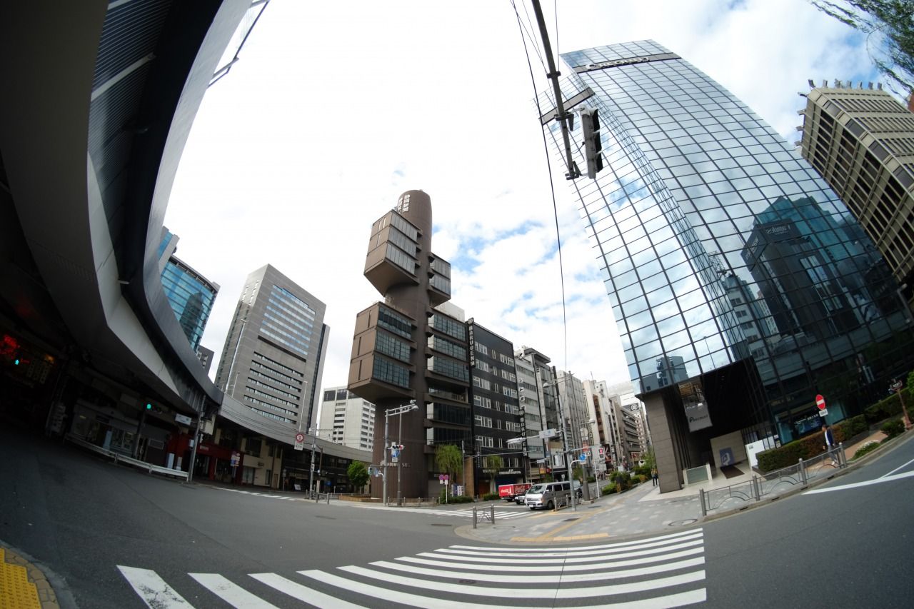 魚眼レンズkamlan8mmf3 0で気になるビルを撮る 19 05 15 中川光学研究室ブログ